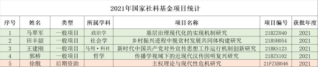 2021年新增国家社会科学基金项目