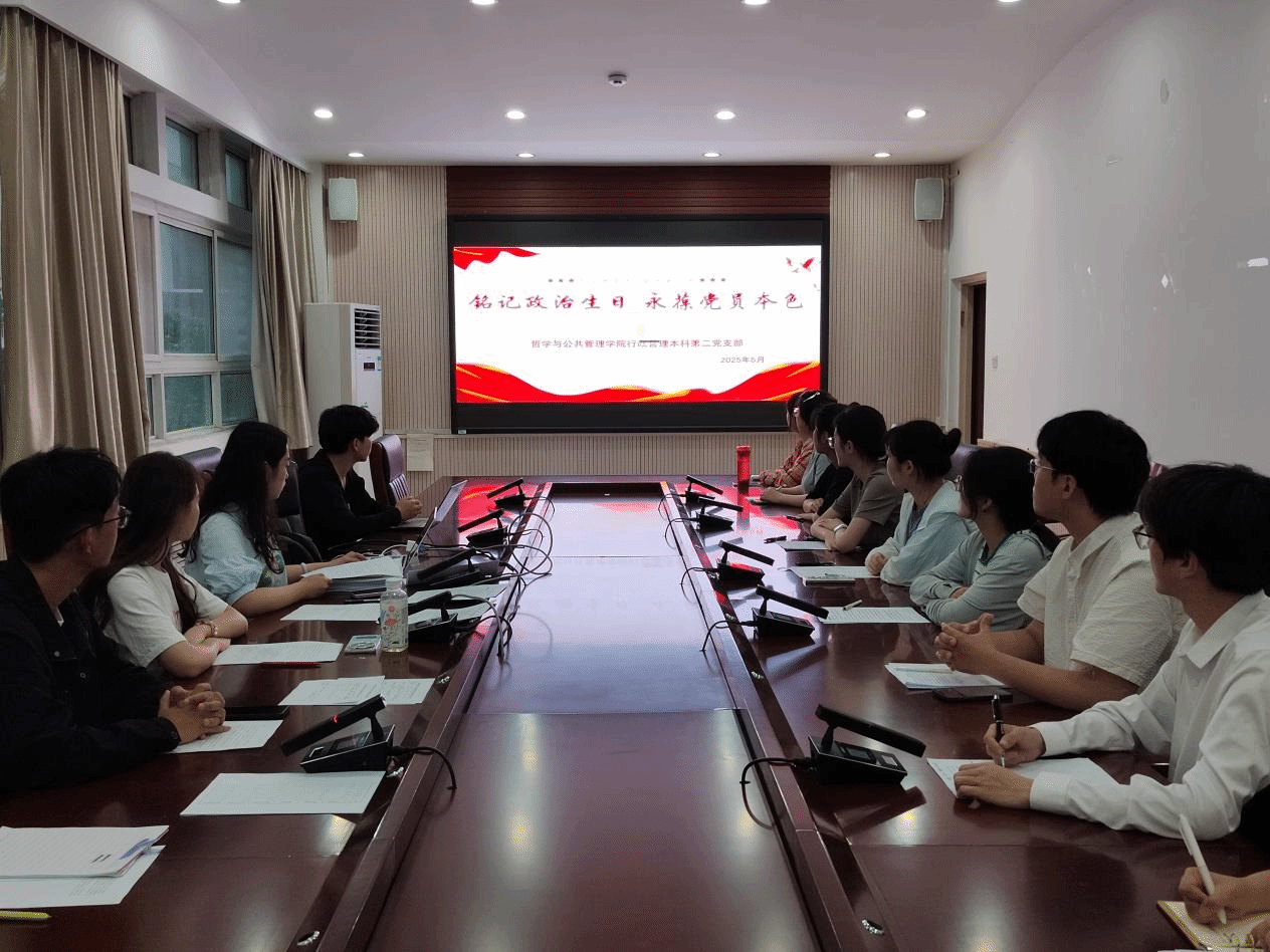 传承红色初心,牢记使命担当。2025年5月28日,行政管理本科第二党支部于学院第三会议室召开“铭记政治生日 永葆党员本色”主题党日活动,通过重温入党誓词、共庆“政治生日”等环节,强化党员身份意识,凝聚奋进力量。支部全体党员、预备党员参加了此次活动。支部书记李蓓主持活动。