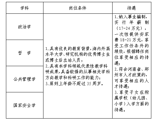 按照学院学科建设发展需求,学院在哲学、政治学、公共管理学、国家安全学及相近学科设有高层次人才岗位,常年面向海内外招聘各类高层次人才,一经聘用,待遇从优。