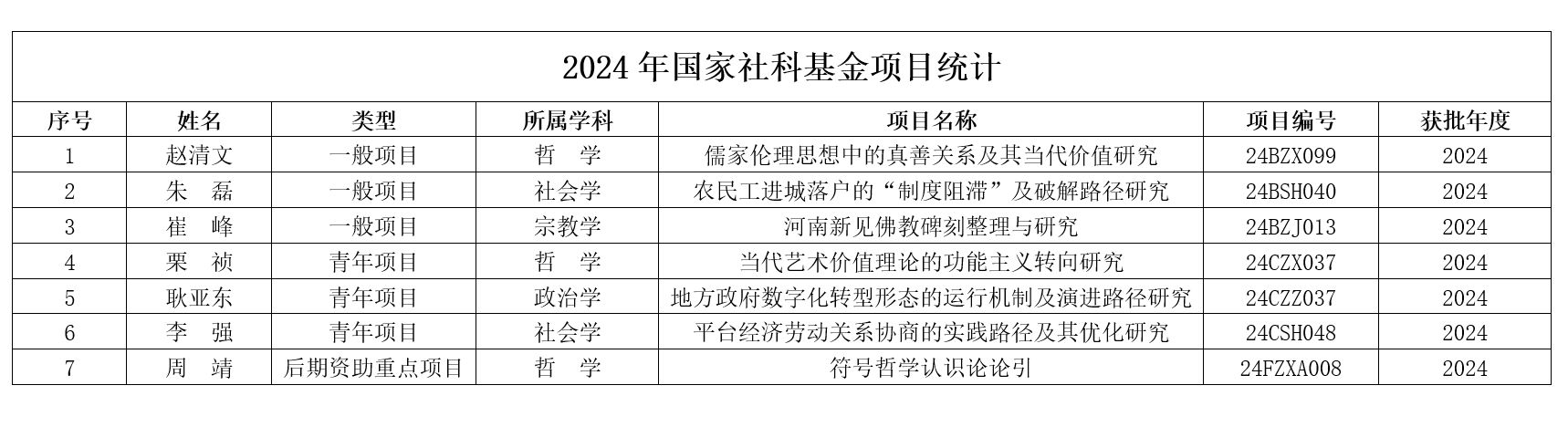 2024年新增国家社会科学基金项目