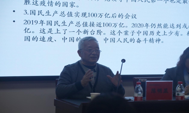 From the perspective of historical development, Professor ChenMingxianinterprets the important historical nodes of the Fifth Plenary Session of the 19th CPC Central Committee, the 14th “five yearsplan” proposal put forward by the Fifth Plenary Session of the 19th CPC Central Committee, and the development requirements of the new era. First, we must fully understand the historical status of the Fifth Plenary Session of the Fifth Central Committee, because it is the two meeting at the one hundred year meeting, the meeting after the victory of the new crown, the 100 trillion meeting of the gross national product, the conference that marks the beginning of the new stage of China’s socialist construction and the turning point of the historical development of China. It marks the conference under the guidance of Xi Jinping thoughts. Secondly, we should have a deep understanding of the “proposal” put forward by the Fifth Plenary Session of the CPC Central Committee, which requires us to realize that the14th “five yearsplan” is a good plan based on practice, understand and grasp the characteristics of the14th “five yearsplan” and the long-term goal of 2035. Finally, ChenMingxiancalled on our youth to keep up with the great development of the times, to keep up with the Party Central Committee to enter a new era and new stage, and to keep up with the Party Central Committee to study hard.