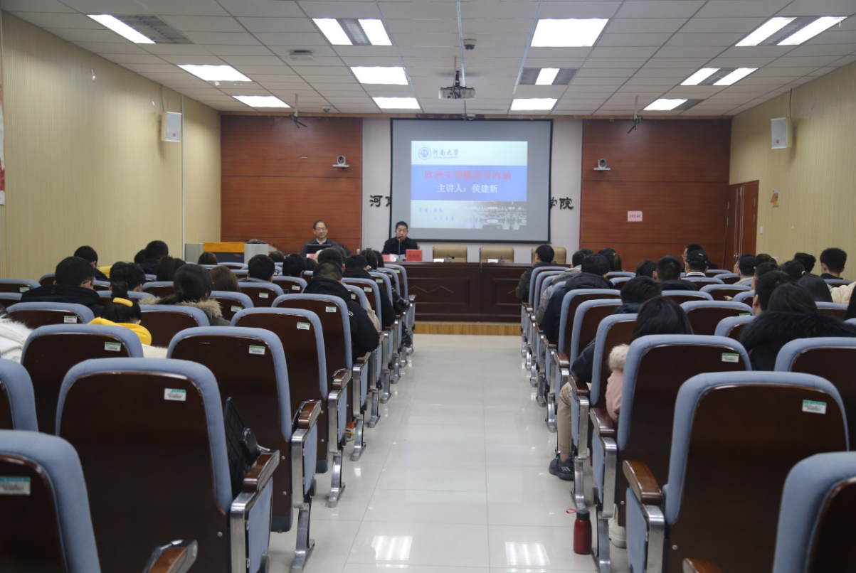 On the afternoon of December 29th, Professor Hou Jianxin,dean of European Civilization Research Institute of Tianjin Normal University and senior professor of Tianjin Normal University, was invited to give an academic lecture entitled "The Concept and Connotation of European Civilization" in our college.The lecture was presided over by Professor Zhang Shengli, a doctoral supervisor of political science of our college. Some teachers and graduate students of our college participated in the lecture together.