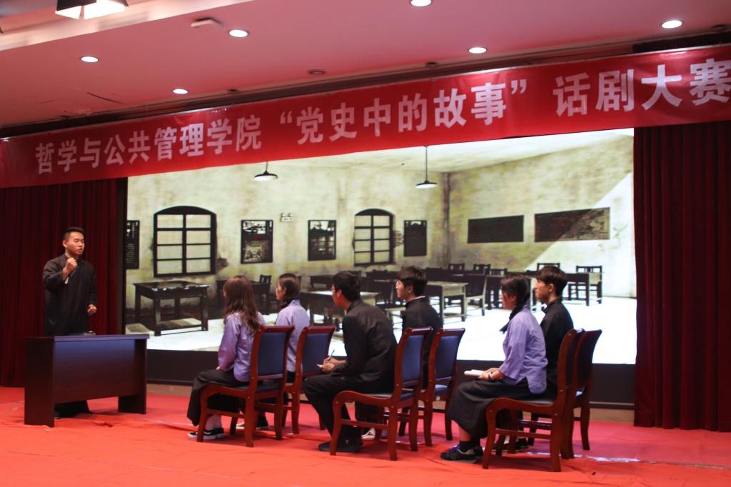 Inheritance of red genes, deduce red classics. On November 21, our college held the first ' Stories in the History of the Party ' drama competition in the Report Office of the College of Education Science. 17 teams of our college participate in the preliminary competition, after several rounds of evaluation, 5 teams into the final. Luo Chunli, Deputy Secretary of the College Party Committee, Liu Xiying, Director of the Party Committee Office, and Jia Yinlan, Secretary of the League Committee, served as the competition judges.
