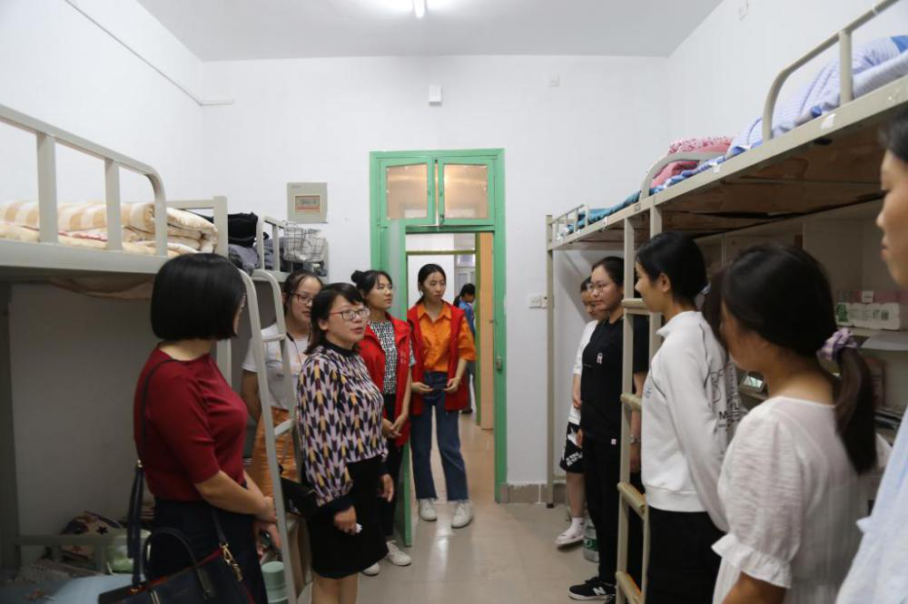 Greetings sent to bed, caring warm heart. During the visit, the college leaders uphold the principle of“two details,”that is, to observe the dormitory environment of freshmen carefully, highlight the shortcomings, and negotiate with the dormitory leaders to obtain solutions. Carefully ask the freshmen ' s entrance feelings, soothe the students ' mood of leaving home, and help students quickly adapt to the new environment in love. At the same time for the future of university life, they pointed out that ' safety first ', one is to pay attention to personal safety, comply with traffic rules to avoid accidents, adhere to exercise to ensure a strong body ;The second is to focus on property security, always maintain and improve vigilance, constantly learn anti-fraud knowledge, and resolutely resist bad temptations. Drillers, from three inches of the bucket, to ten thousand deep. For life planning, the leading group and the counselor team encourage freshmen to feel the beauty of life with heart, devote themselves to professional learning, participate in voluntary service, pursue ideal dreams with heart, integrate into the family of philosophy and management in mutual assistance, and achieve all-round development in moral education, intellectual education, sports, aesthetic education and labor education, and constantly learn knowledge and skills like sponge water.