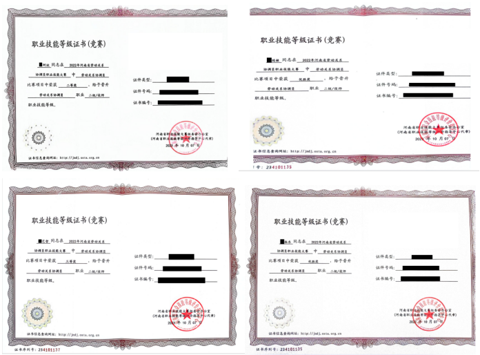 2022年末,这四位同学在2022年第一届“河南省劳动关系协调员职业技能大赛”中展现出卓越的专业素养和技能水平,获得了全省学生组一等奖(共3名)二等奖(共1名)的优异成绩,从而获得了相关认证;河南大学也取得了优秀组织奖。