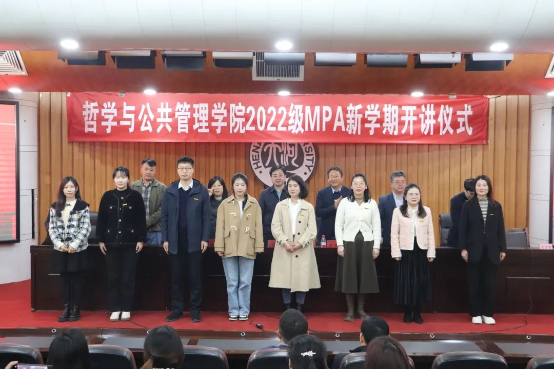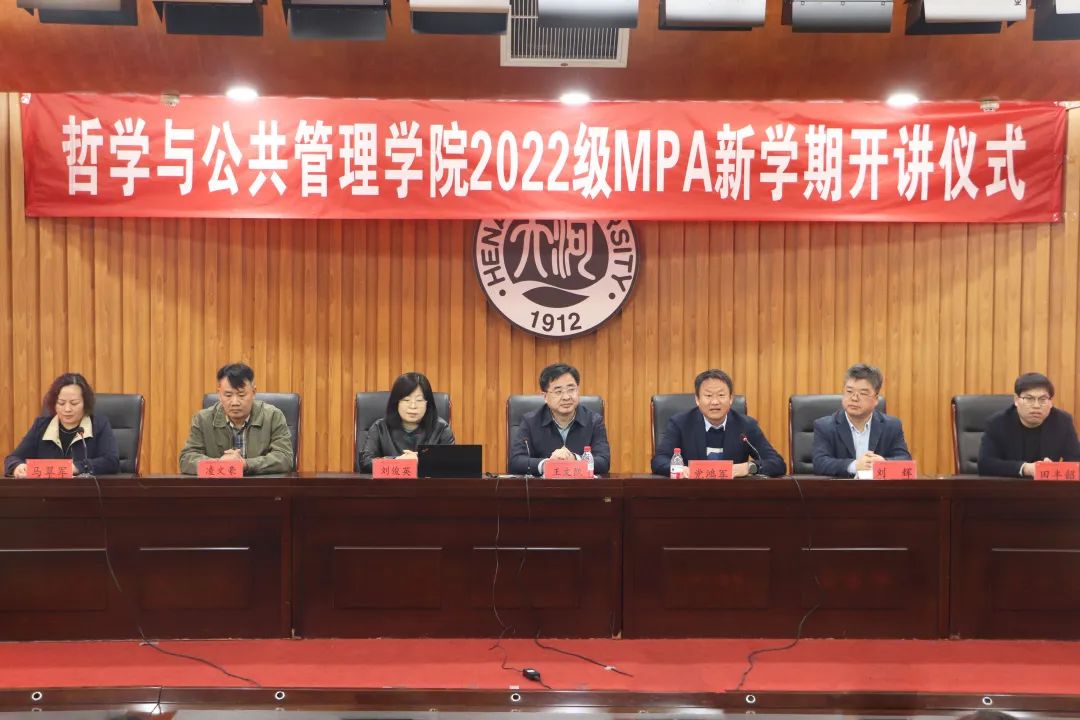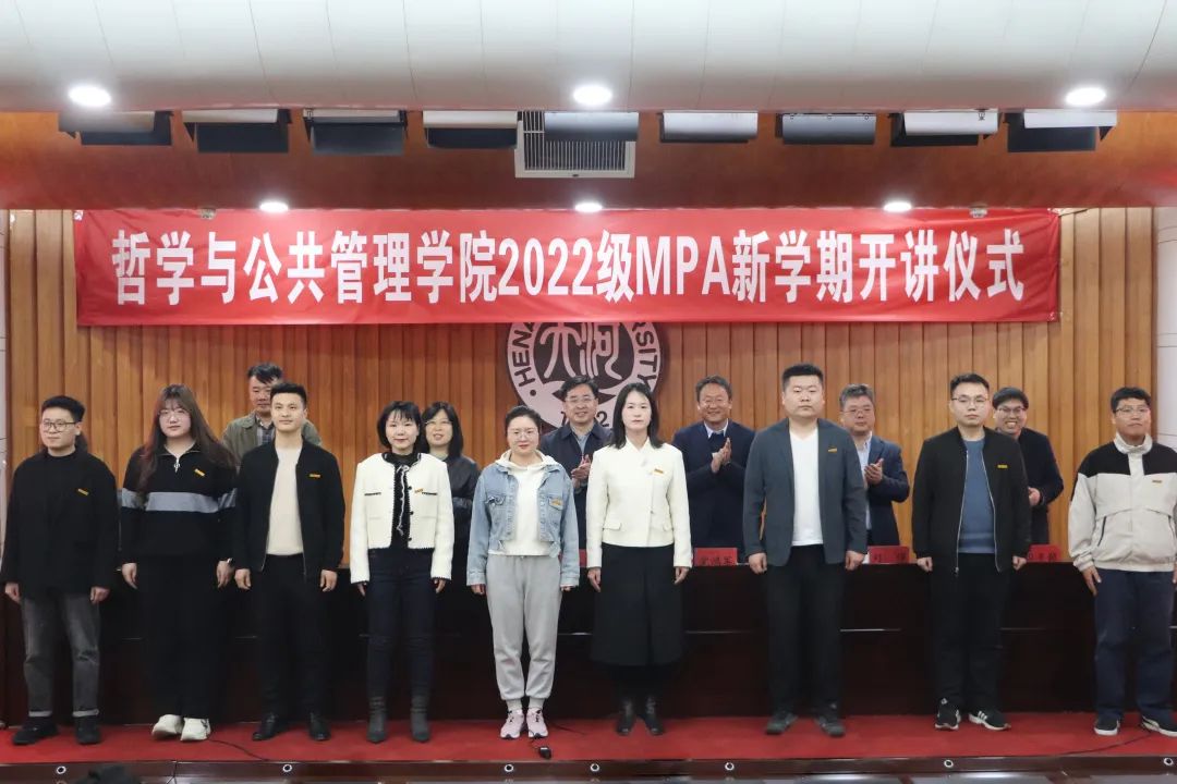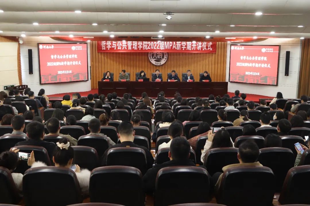 启航新征程,共谱新华章。为贯彻落实教育厅关于上好开学第一课的通知,做好上课动员,树立持续学习、善于学习、学以至善的信心,3月4日上午,哲学与公共管理学院2022级MPA新学期开讲仪式在金明校区行政楼249报告厅隆重举行。学院党委书记党鸿军,MPA职业导师代表、开封市人民政府发展研究中心主任王文凯,副院长马翠军、田丰韶,导师代表凌文豪、刘俊英、刘辉、梁国民、唐秋伟、刘素姣、何炜、张娟,MPA教育办公室朱磊、吴岚波、吴宝红,以及全体2022级MPA研究生参加。仪式由副院长马翠军主持。