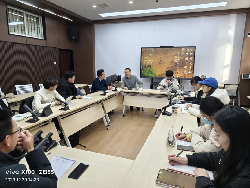 周松教授以明代历史为切入点,在历史学的视角中为同学们展开思想画卷。他讲到,明朝对元朝具有直接的继承性,在君主制、宦官专权和地方势力等问题上与元朝具有一贯的连续性,同时明朝在王朝的变化发展中也进行着动态改革,逐渐发展出独具特色的治理体系。他还提到,在历史研究中,要注重对历史文献的把握。对于浩如烟海的历史文献考证以及同一时代不同文献之间的相互关系需要被重视。他为同学们介绍了明朝史书文献的体例等特点,以生动的历史实例讲述了元明清之间的文献特点区别。
