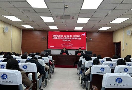 10月23日下午,“国培计划(2024)项目县——延津县初中、小学班主任培训班”开班仪式在学院第一会议室举行。院党委书记党鸿军、 继续教育与培训中心主任韩辰锴和来自河南延津县的50名初中班主任、50名小学班主任参加了开班仪式,仪式由韩辰锴主持。
